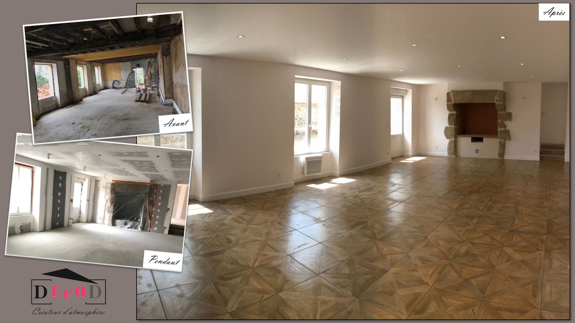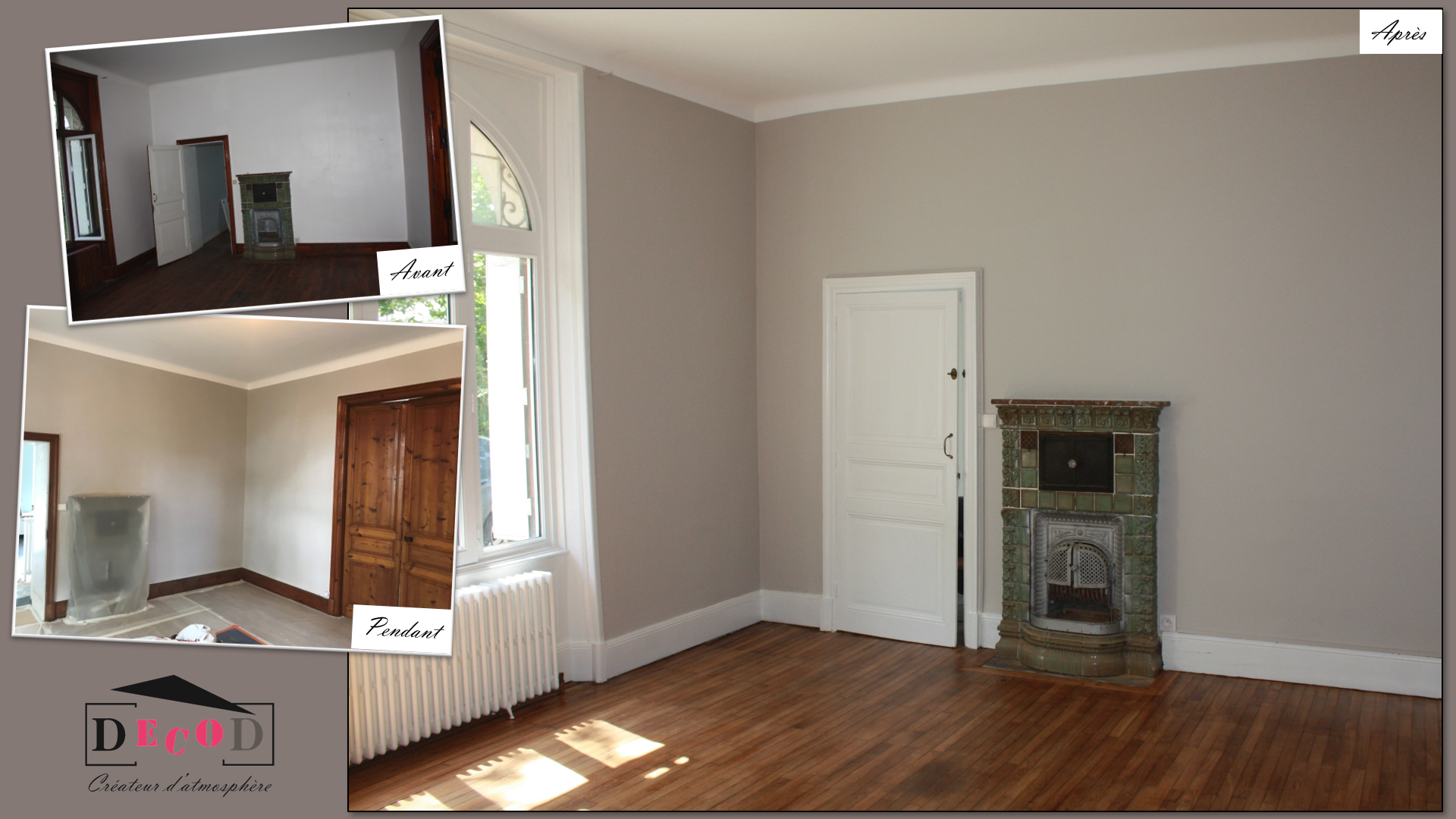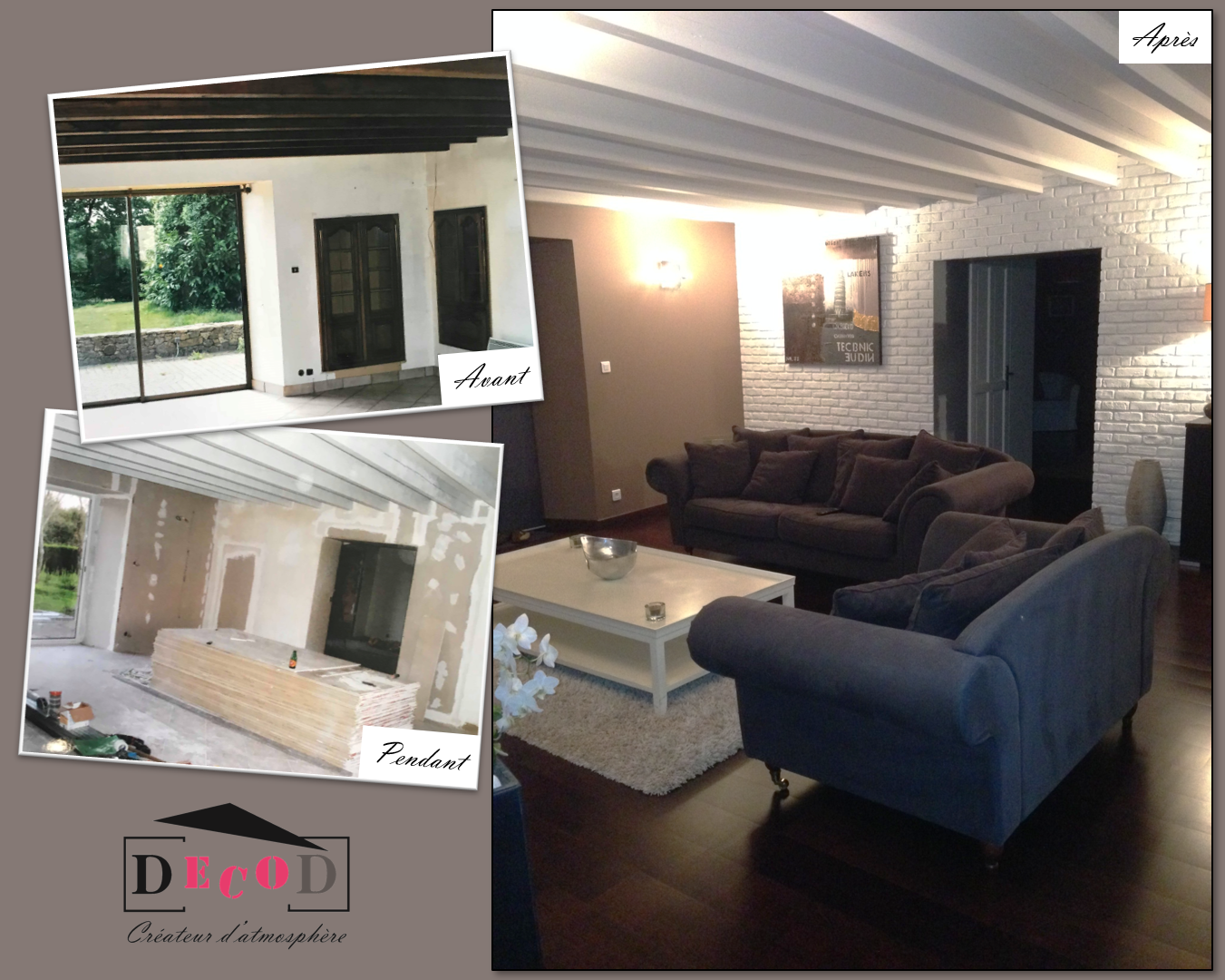 Relooking d’un salon (2009) – Cette maison ancienne a bénéficié d’une rénovation complète. Après avoir imaginé le futur aménagement, DecoD a assuré la coordination des artisans et une partie des travaux (peinture, parement, décoration)