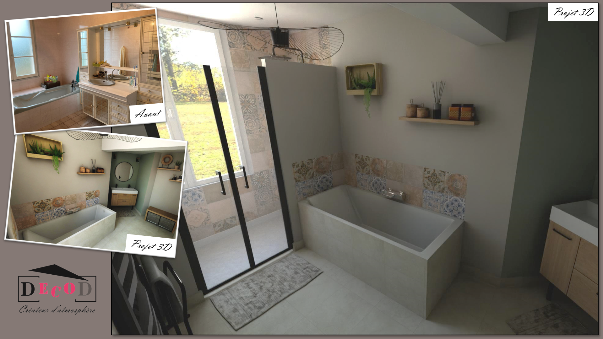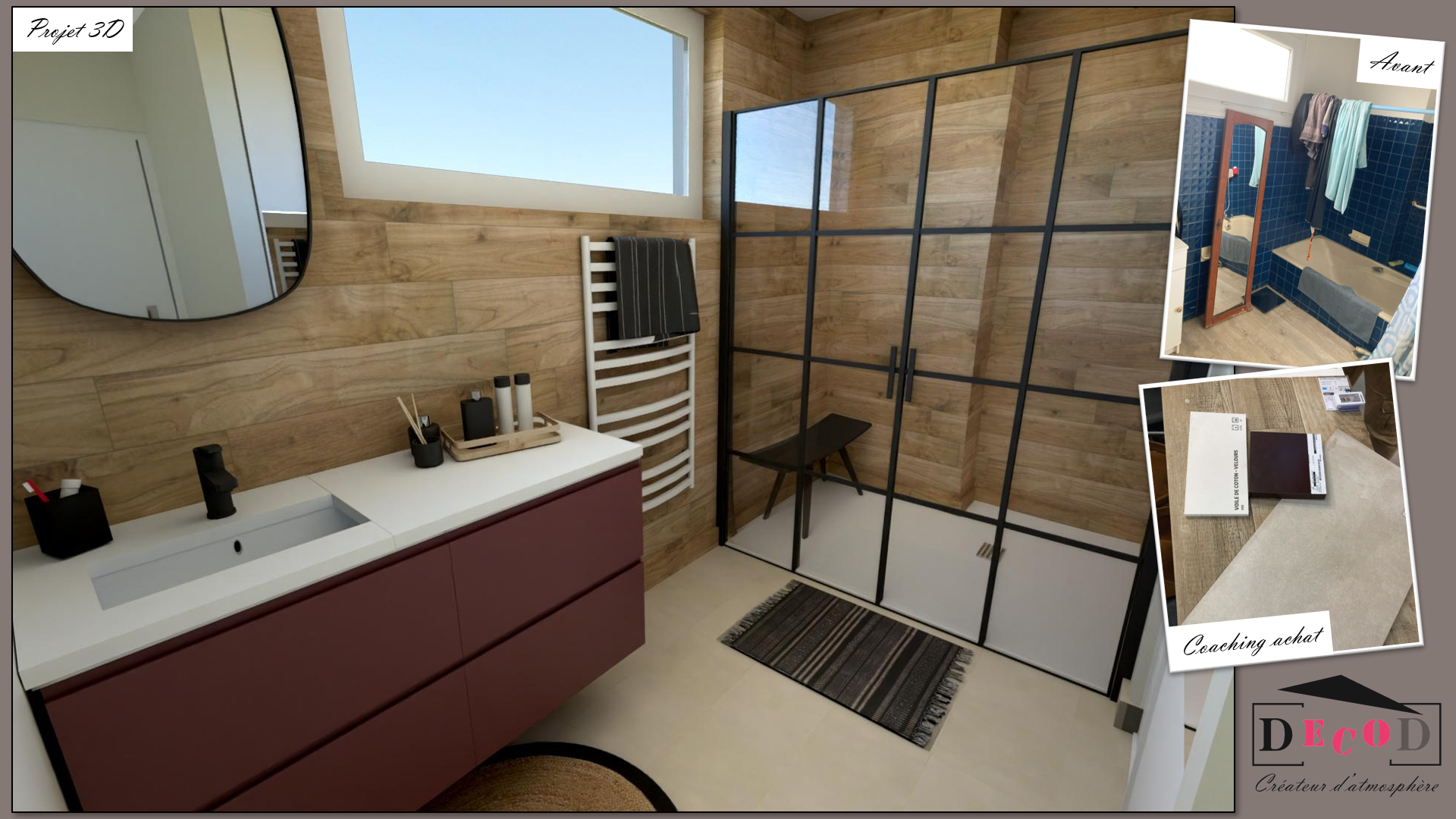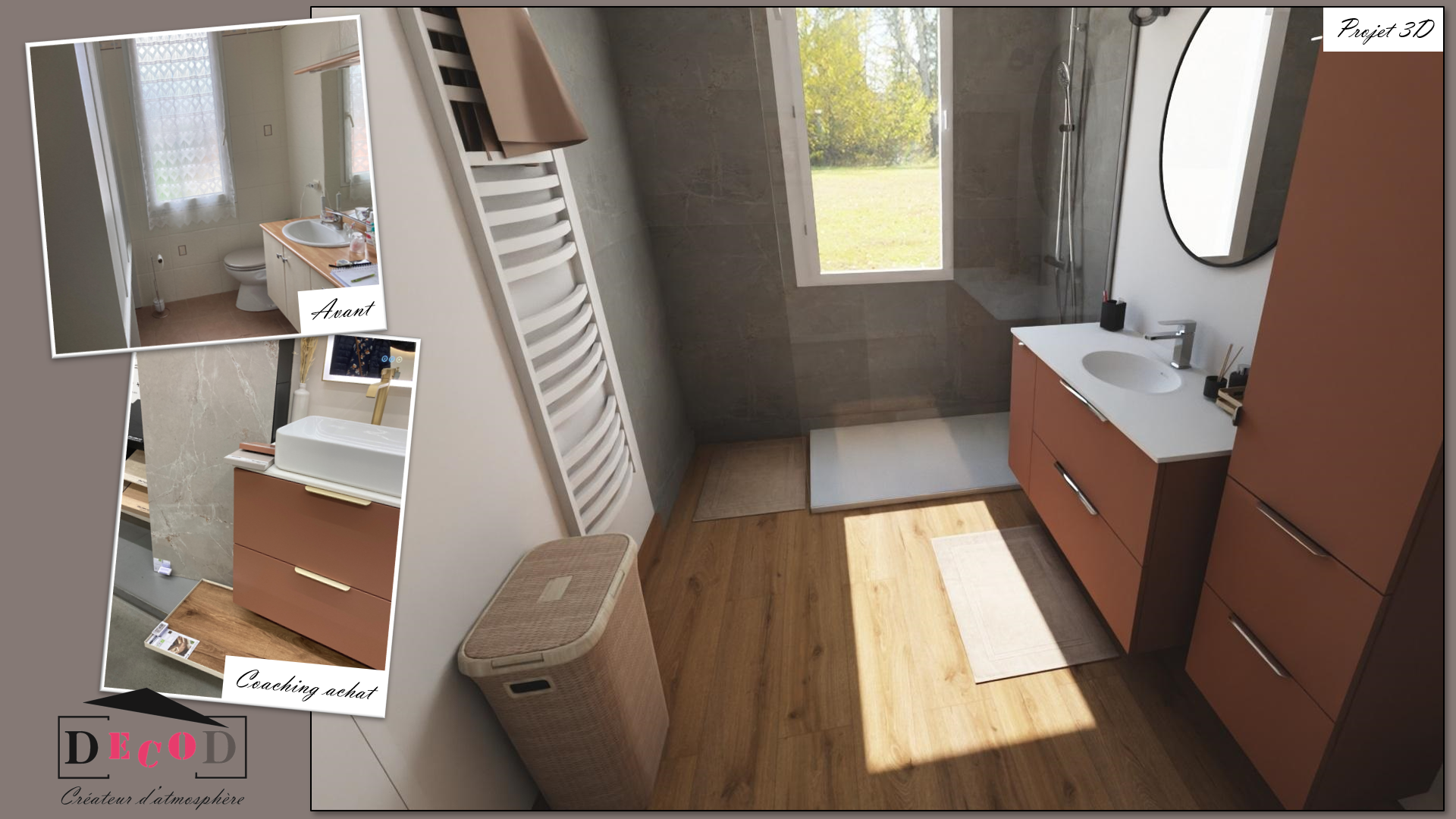 Coaching salle de bain (2022) – Ce projet a été réalisé suite à un coaching Salle de bain qui comprend une visite technique, un accompagnement au choix des meubles et matériaux, des vues 3D photoréalistes et la mise en relation avec un artisan.