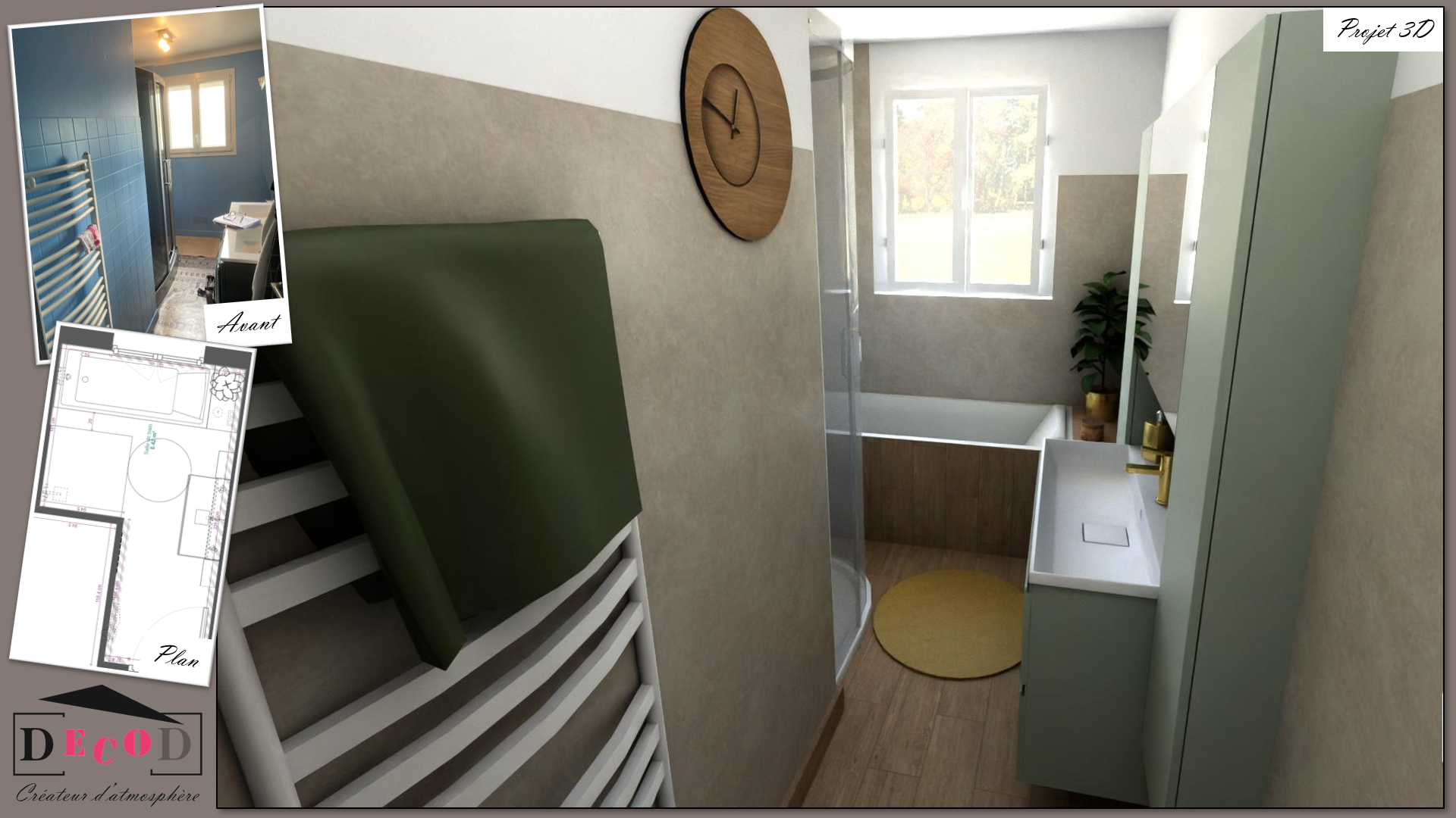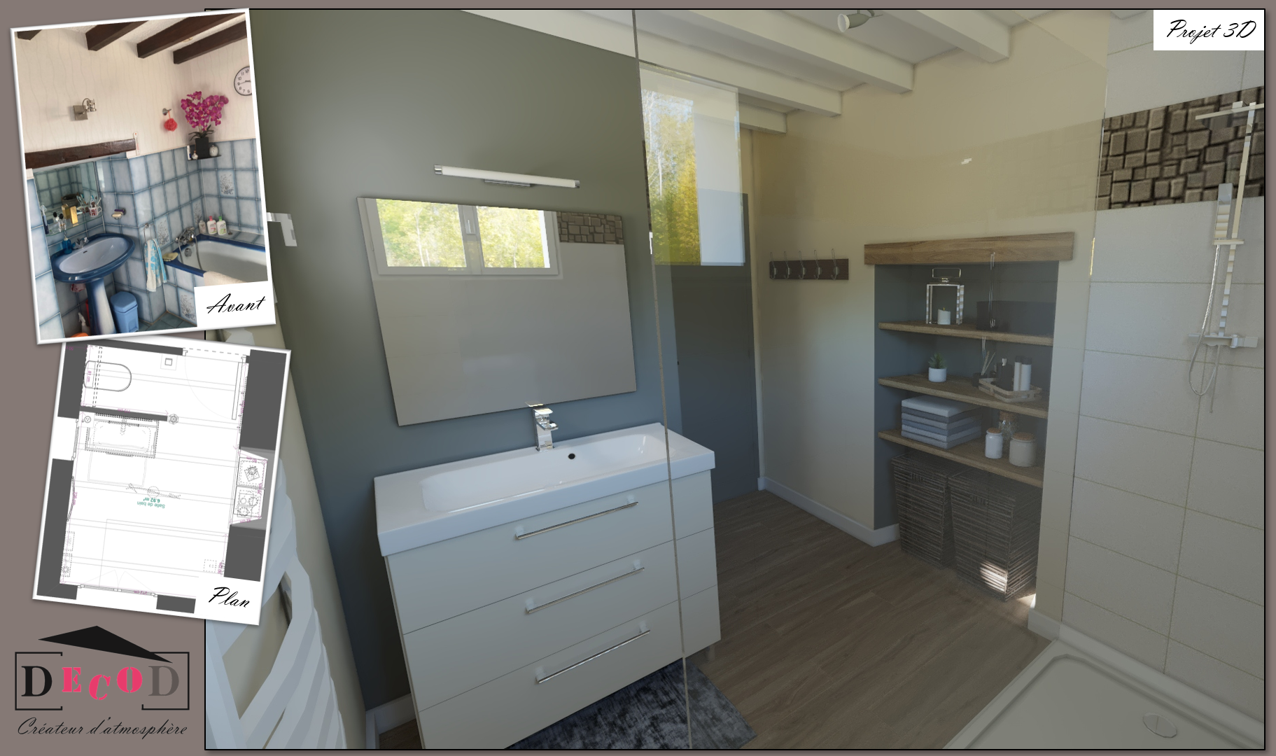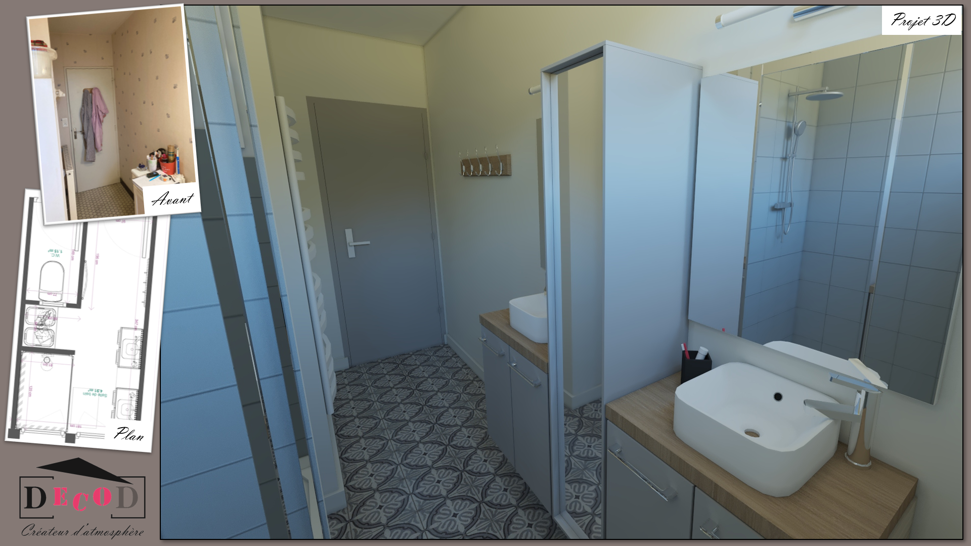 Coaching salle de bain (2023) – Ce projet a été réalisé suite à un coaching Salle de bain qui comprend une visite technique, un accompagnement au choix des meubles et matériaux, des vues 3D photoréalistes et la mise en relation avec un artisan.