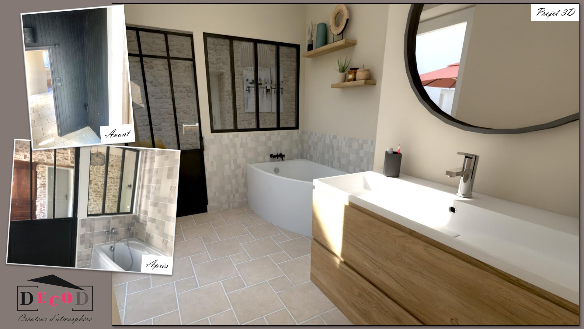 Rénovation d’une salle d’eau (2018) – Ce client a fait appel à DecoD pour imaginer et superviser la rénovation de cette salle d’eau dans une maison de location.