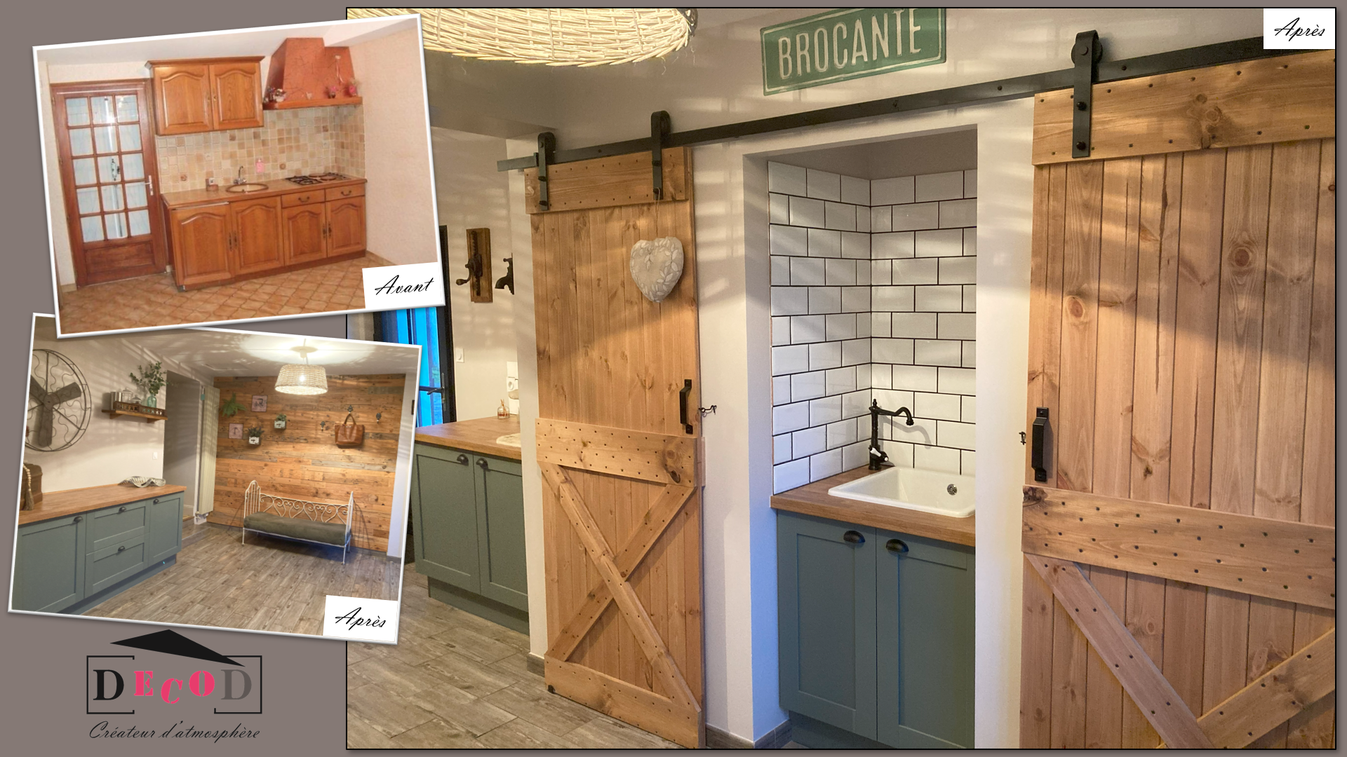 Création d’une arrière cuisine (2024) – Dans la cadre d’une rénovation complète avec réagencement, DecoD a imaginé une grande arrière dans le style Farmhouse qui fait également office de buanderie.