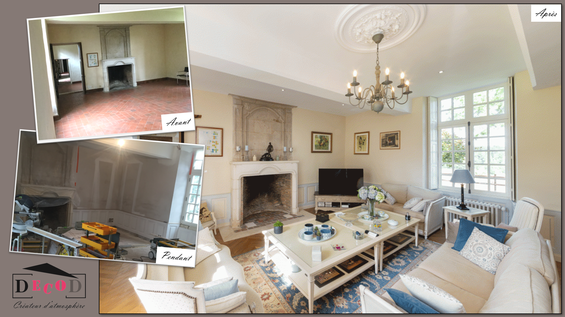 Rénovation d’un salon (2018) – Apporter un style XIXème dans une demeure du XVIème, tel était le briefing des clients sur ce projet de rénovation confié à DecoD!