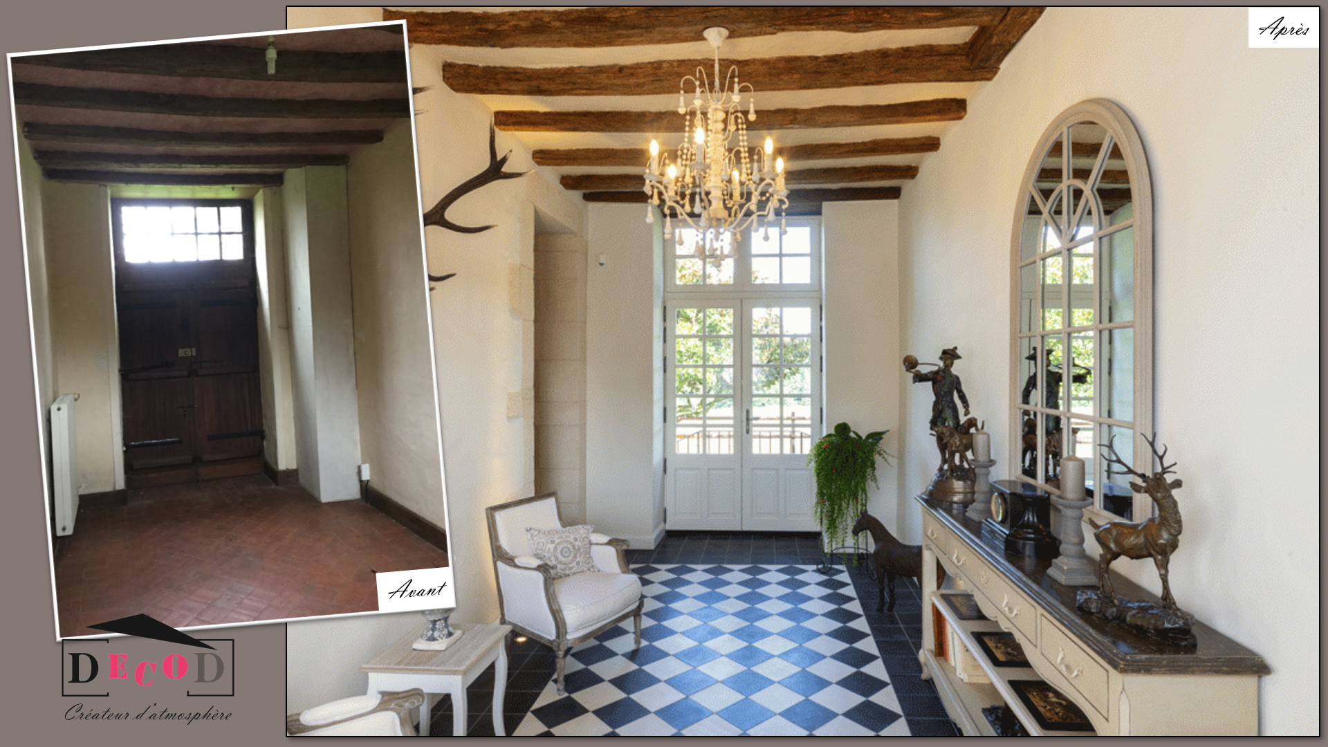 Rénovation d’une entrée (2018) – Apporter un style XIXème dans une demeure du XVIème, tel était le briefing des clients sur ce projet de rénovation confié à DecoD!